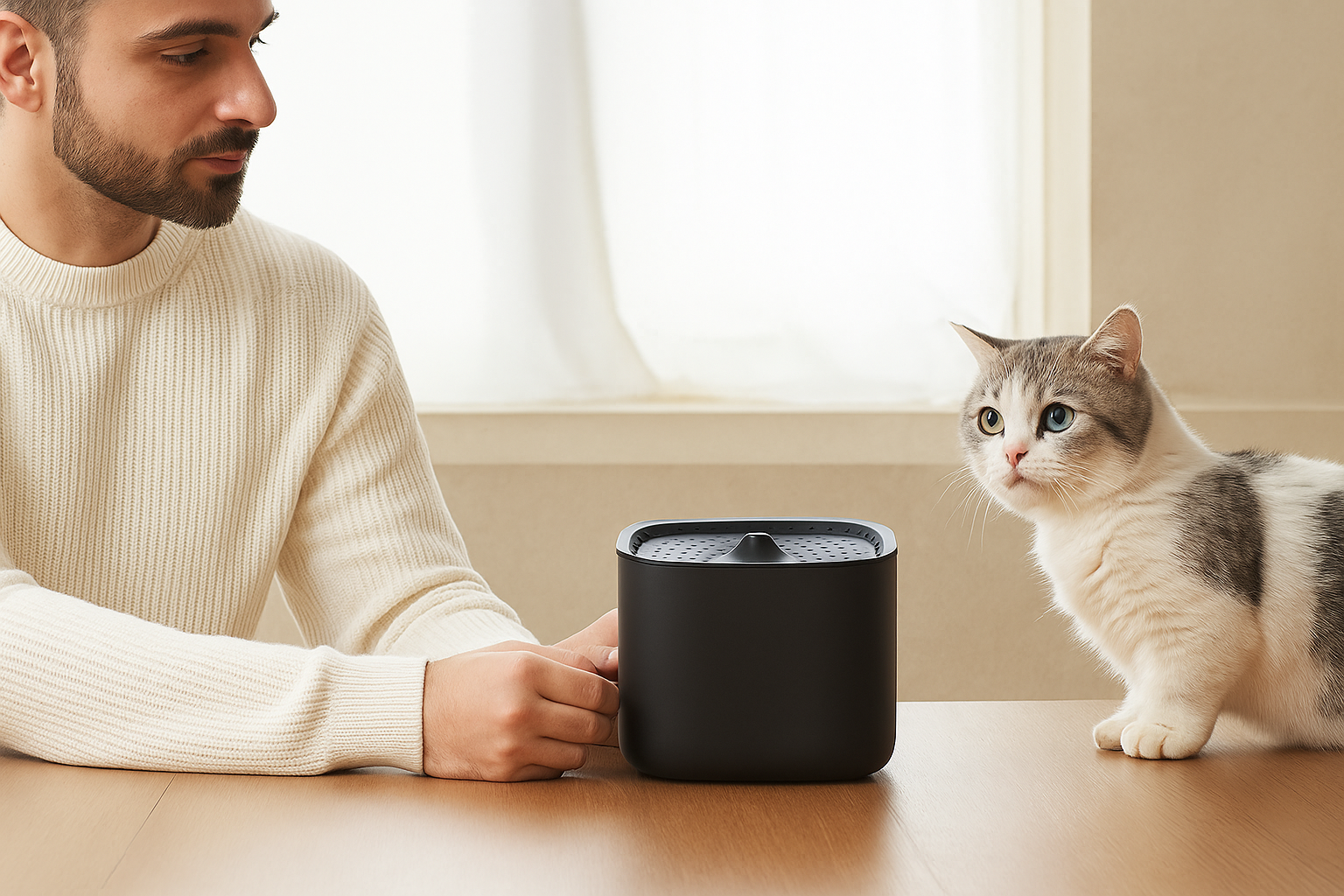 Some cats take a few days to adjust. Start with the fountain turned off (still water), then switch it on gradually. Most cats are naturally drawn to flowing water once they’re used to it.