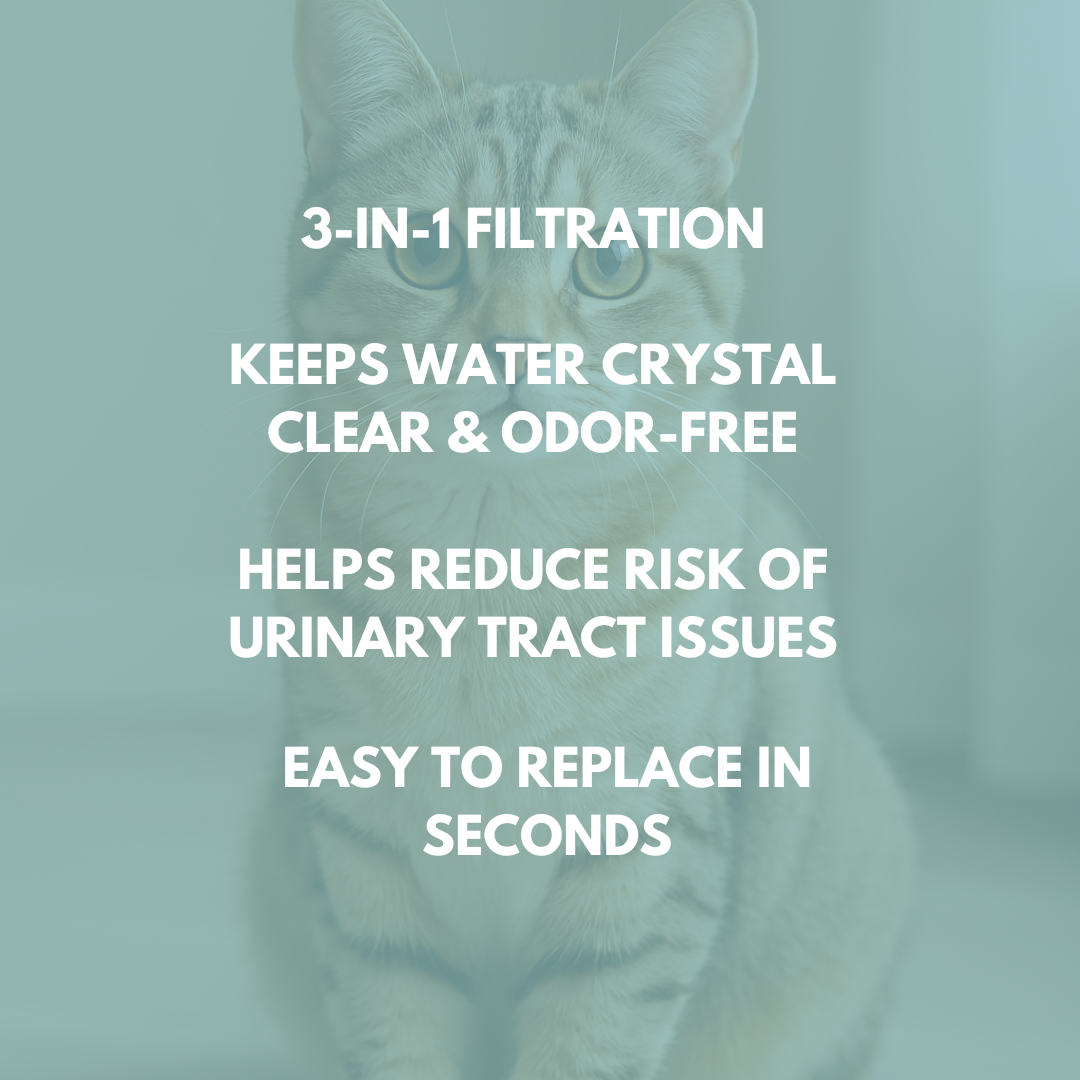 Activated carbon eliminates bad tastes & smells so cats drink more.